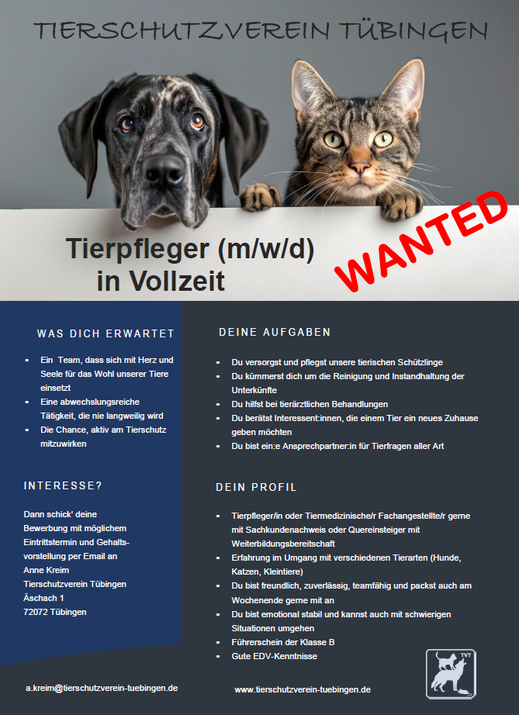 Für das Tierheim in Tübingen suchen wir zum nächstmöglichen Eintrittstermin
