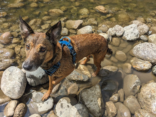 Hundebegegnungen fallen ihr schwer, dies benötigt noch sehr viel Training. Vor allem Begegnungen mit kleinen, bellenden Hunden sind für sie sehr herausfordernd.