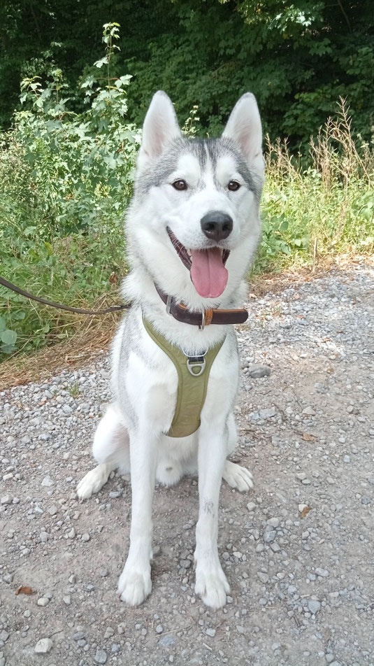 Wir stellen uns Husky - erfahrene Menschen oder solche die es werden wollen, für Jacky vor. Die Leinenführigkeit klappt schon ganz gut, auch wenn er sich schnell von anderen Reizen ablenken lässt.
