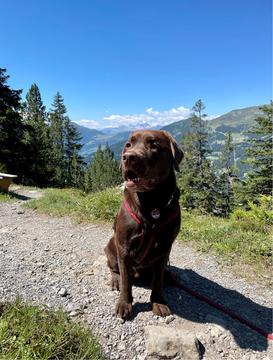 Aufgrund früherer Ereignisse in Form von Beissvorfällen gegenüber anderen Hunden besteht für Mokka beim Spaziergang Leinen und Maulkorbpflicht.