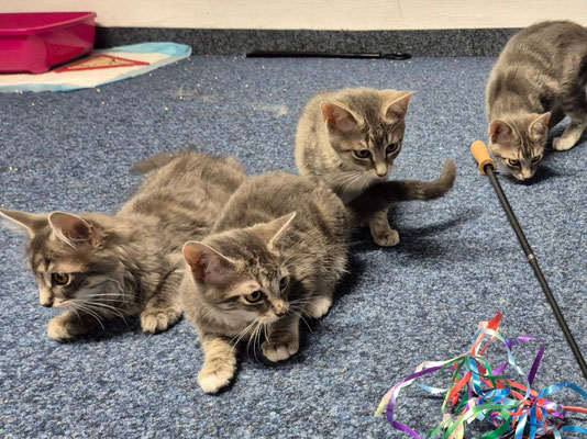 Auf unserer Pflegestelle lernten die Kätzchen alles, was für ein harmonisches Familienleben wichtig ist: Sie sind stubenrein, vertraut mit Menschen, kennen andere Katzen und gehen auch mit Hunden entspannt um. Damit bringen sie die besten Voraussetzungen mit, um sich in ihrem neuen Zuhause schnell einzuleben.