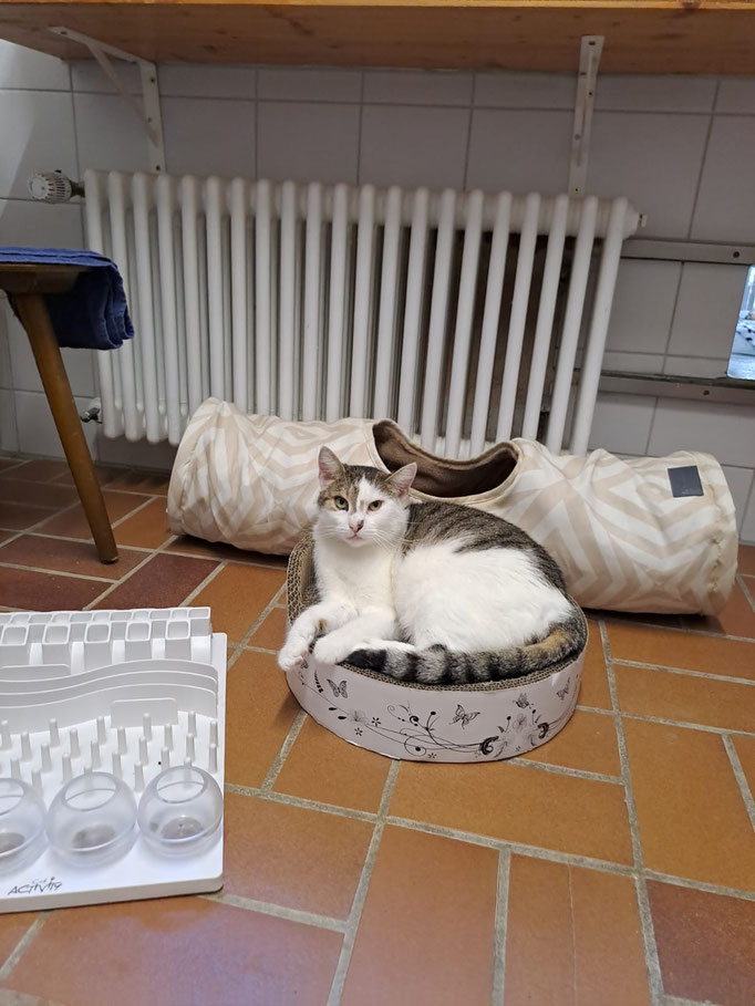 Unsere Mathilde ist ca. 3 Jahre alt, weiblich, kastriert und keine Anfängerkatze. Sie ist ruhig, schüchtern, zurückhaltend und unsicher. Wenn man ihr Vertrauen bekommen hat, kann sie sehr verschmust, freundlich und zugänglich sein. Sie benötigt einen ruhigen, katzenerfahrenen Haushalt ohne Kinder, wo sie genügend Zeit bekommt um Vertrauen aufbauen zu können.